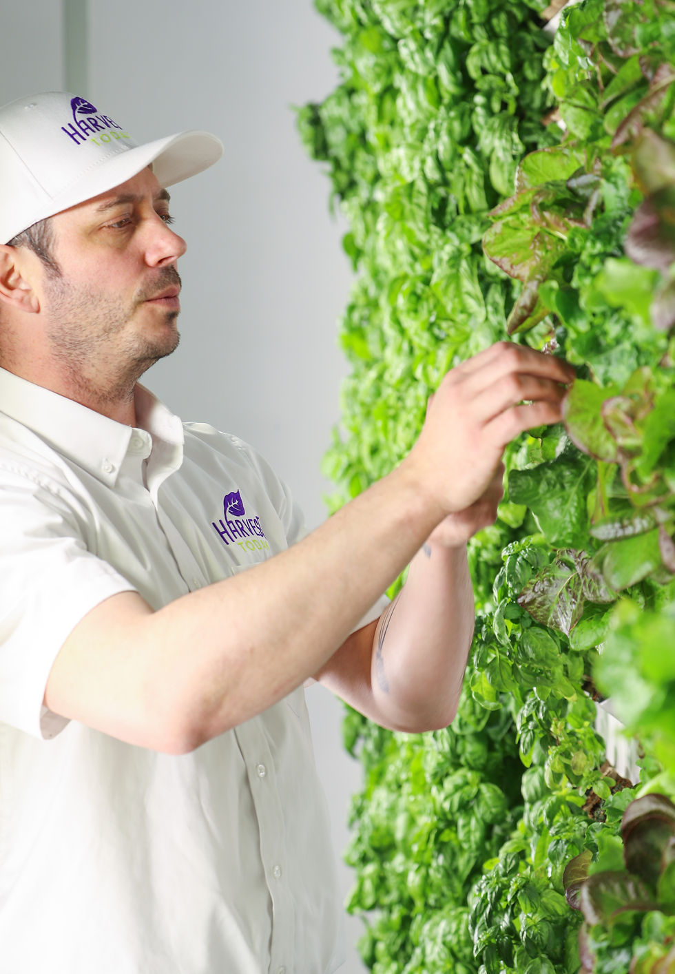 At the heart of the Living Food initiative is the Harvest Wall, a patented vertical growing system invented by Harvest Today.